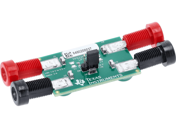 Texas Instruments TPS22991EVM Evaluation Module features the TPS22991 load switch. The VIN and VOUT connections to the TPS22991 and the PCB layout routing can handle high continuous currents and supply a low-resistance pathway into and out of the device under testing. The test point connections enable the user to control the TI TPS22991EVM with user-defined test conditions and make accurate RON measurements.Features